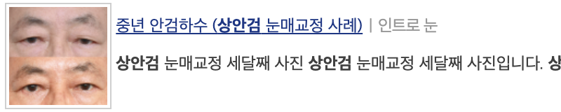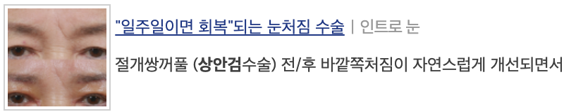 눈 위 피부가 팽팽해지고 쌍꺼풀이 생겨서 전보다 젊어 보이는 미용적인 효과도 있지만
